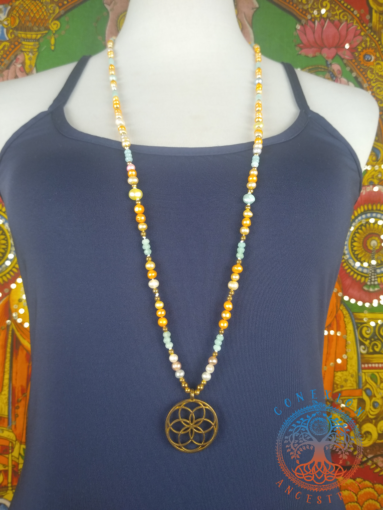 Collar de Turquesa 6mm, coral y Ala de ángel.