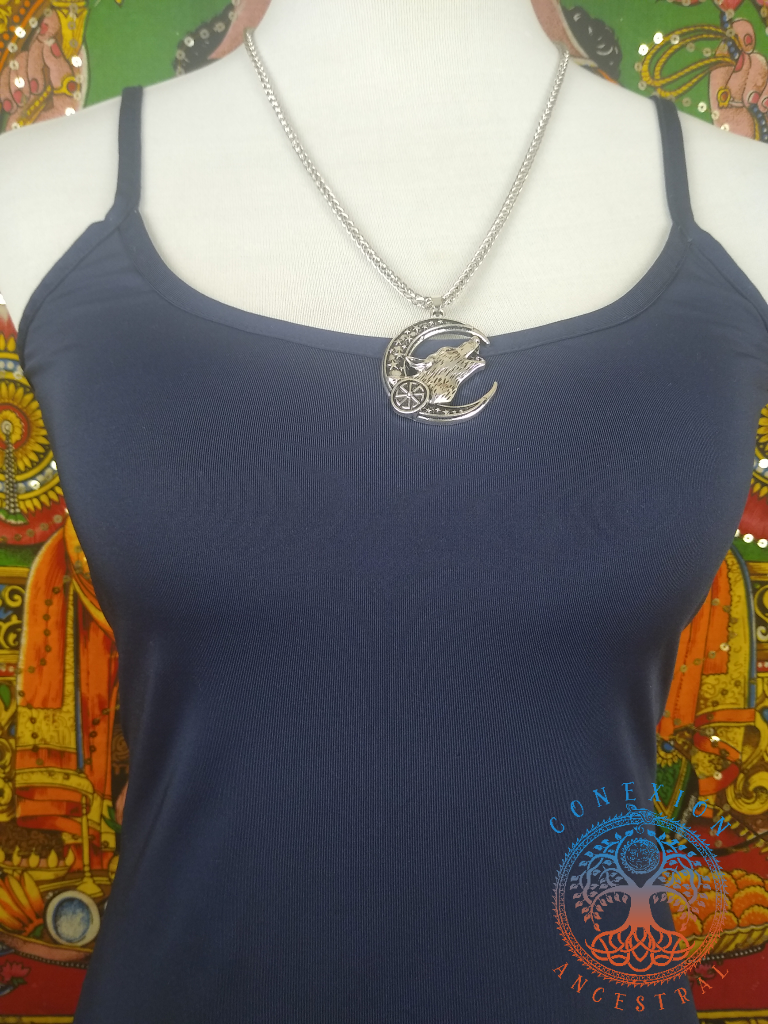 Collar con colgante de cabeza de Lobo aullando, con Luna y Kolovrat